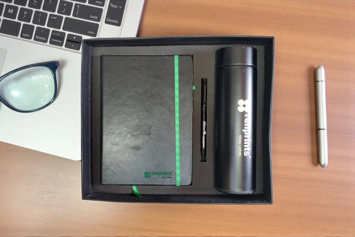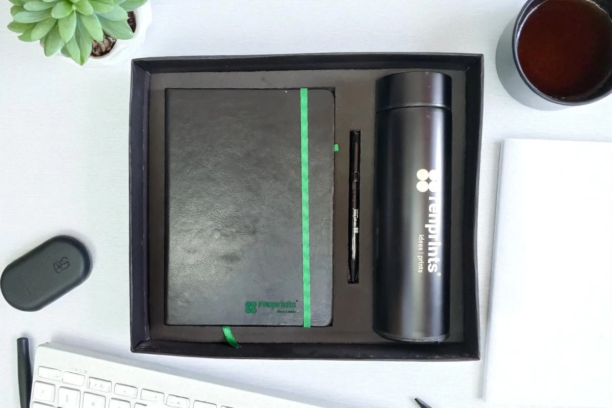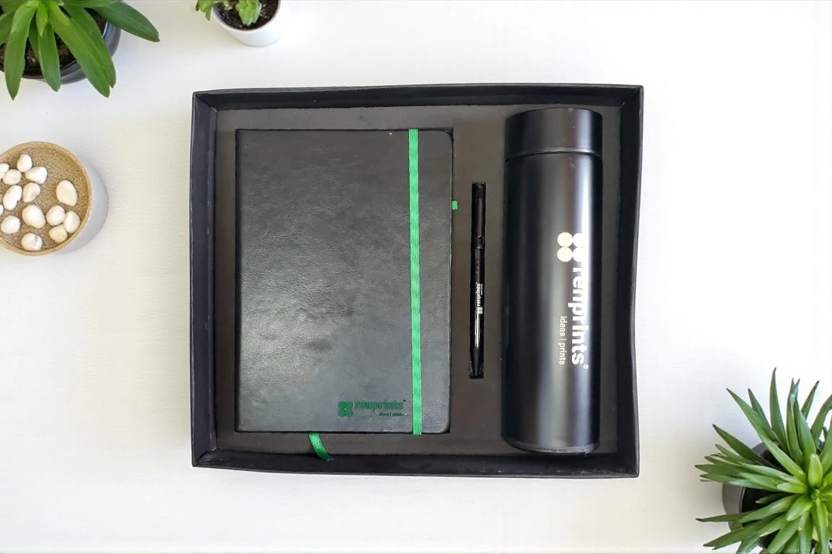 • Material: A Premium Customized A5 Notebook, A Premium Pen & Stainless Steel Temperature Bottle.